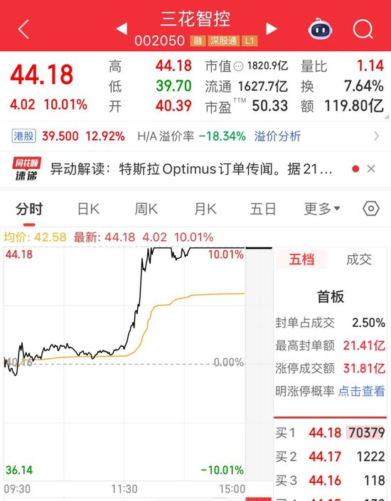 此前,市场有传闻称,特斯拉已向三花智控下达超50亿元大额订单,核心采购其线性关节产品。