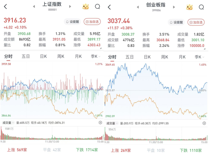 至收盘,上证综指涨0.1%,报3916.23点;科创50指数跌0.94%,报1416.58点;深证成指跌0.25%,报13086.41点;创业板指涨0.38%,报3037.44点。