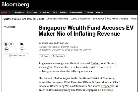 消息面上,据彭博报道称新加坡政府投资公司(GIC)指控蔚来收入虚增。