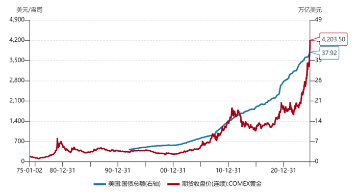 (二)黄金代表市场对美国“债务不可持续”的担忧。但“临界点”究竟在哪?债务膨胀突然间就不可控了,还是只是因为政府关门所代表的政治博弈,就判断马上要崩溃?