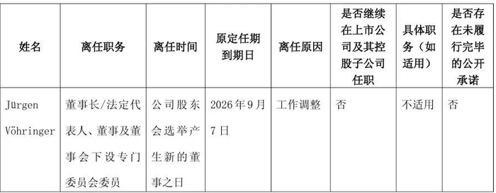 记者还发现,2023年至今,Jürgen Vöhringer曾多次对公司董事会议案提出异议。比如2023年10月,Jürgen Vöhringer就对选举自己为第六届董事会董事长的议案投下弃权票,原因是“基于本人年龄及公司人才梯队建设等考虑,应当考虑新的董事长人选”。