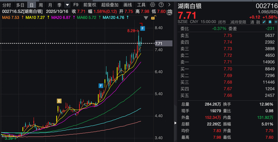 今年以来,贵金属市场价格大幅上涨,带动湖南白银股价狂飙。这也是其上调股票回购价格的重要原因。行情数据显示,自今年6月1日以来,湖南白银股价累计涨幅超过124%,最新报收7.71元/股,总市值涨至218亿元。