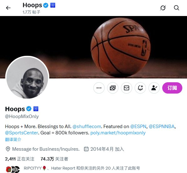 值得一提的是,Hoops在推特拥有74.3万的粉丝。
