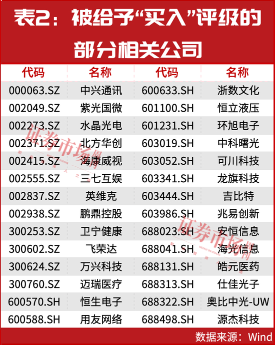 结合研究机构的评级情况来看,多只AI赛道的个股被给予了“买入”评级,如中兴通讯、紫光国微、水晶光电、北方华创、海康威视等(见表2),其中多只个股更是获得了多家研究机构的联合推荐,如高端处理器公司海光信息,公司的产品包括海光通用处理器(CPU)和海光协处理器(DCU)。