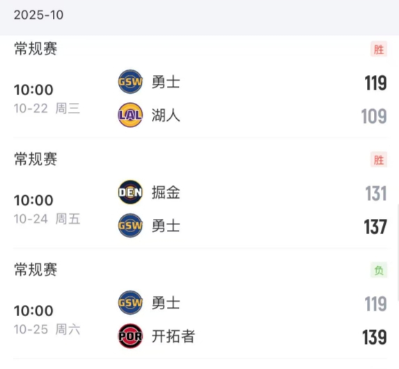 勇士作为征战了揭幕战的球队,上来就面临了第一个4天3赛(揭幕战打湖人,主场打掘金之后背靠背客场挑战开拓者)。