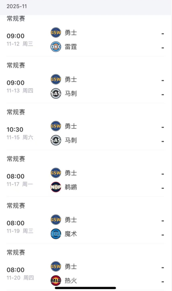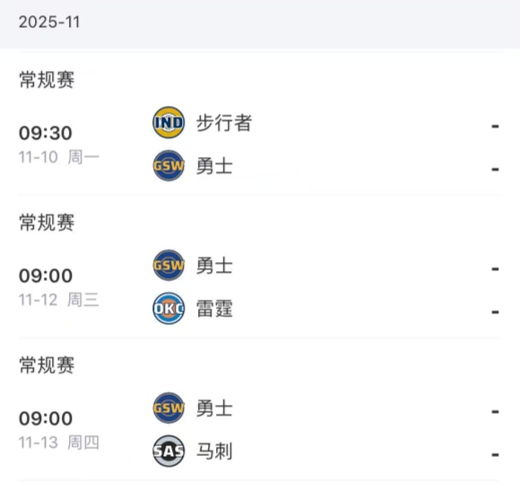 到11月下旬,勇士的赛程紧密度才会略有下降。